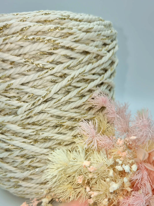 Natural Shiny Gold 3 Strand Macrame Cord - 3MM 3 Strand Luxe Cotton String 1KG