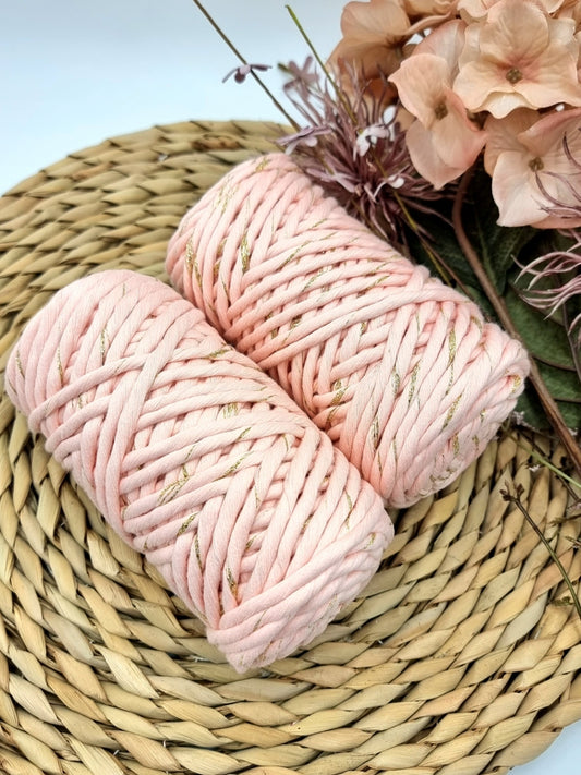 Blush Pink Shiny Gold - 3MM Single Strand Luxe Cotton Macrame Cord 250gr